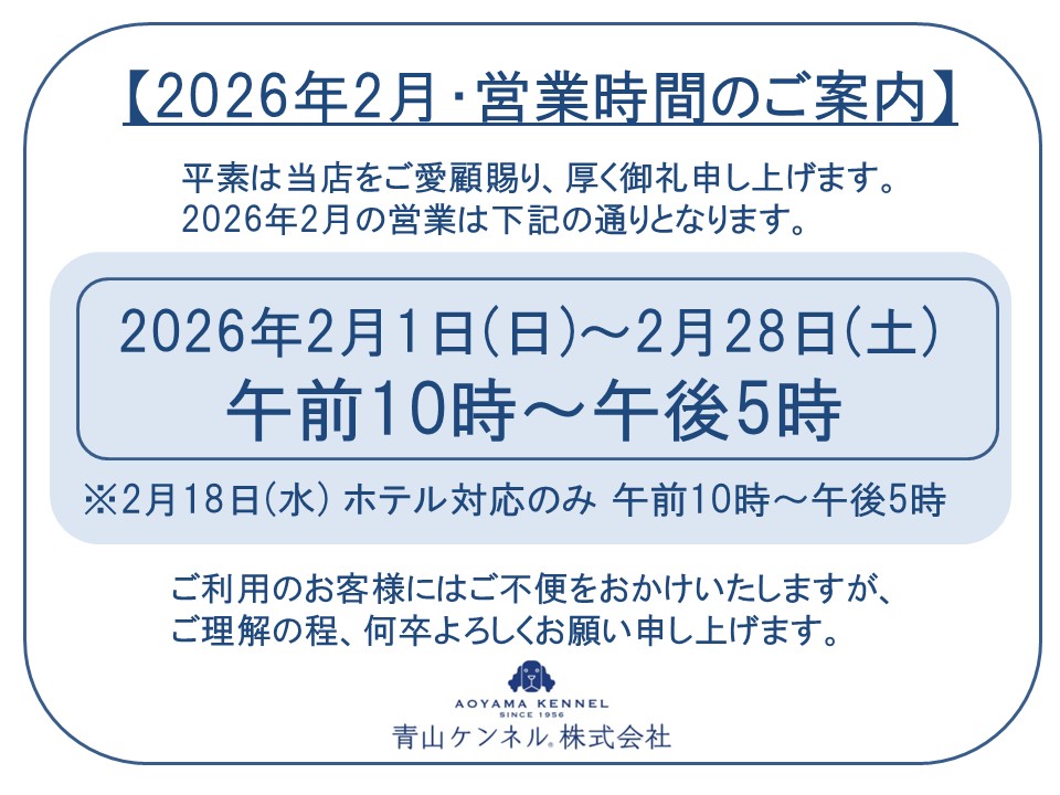 - 2026年1月25日◆2026年2月・営業時間のご案内◆